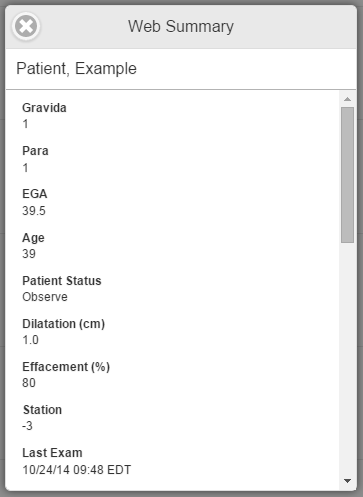 The Web Summary allows you to view information that has been charted on the patient.